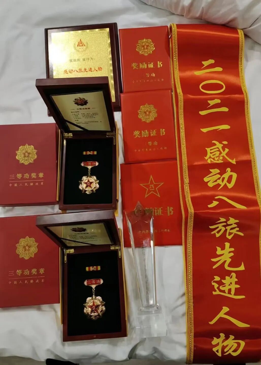 入伍以來,張?zhí)锾锿颈憩F(xiàn)優(yōu)異,曾榮立三等功2次、嘉獎(jiǎng)2次、優(yōu)秀士官1次。部隊(duì)生涯中他多次參加“百名班長(zhǎng)”,“偵察情報(bào)尖兵”等比武爭(zhēng)先,均取得優(yōu)異成績(jī),多次被集團(tuán)軍表彰為“優(yōu)秀班長(zhǎng)標(biāo)兵”等榮譽(yù)稱號(hào)。